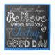 Our Good Day inspirational tile features a text design using various fonts of white on a black chalkboard look background with a pop of blue for color with a blue matching border! Text reads "faith...trust...hope Believe, waken and say Today is going to be a GOOD DAY"!