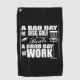 The golf towel exceeded my expectations! My husband actually approved of it! He liked the picture quality, thickness and overall usefulness of the golf towel I ordered to commemorate his lowest ever golf score. He liked it so well that I ordered 8 more towels with photos of his home golf course. Each one of the eight has the name of one of his golf group members. I will give them as party favors at my husband's 70th birthday party later this year. The different names were easy to add because the Zazzle template is so very easy to use. The colors were bright and authentic in all 9 of the towels that I made. The one of the 9 that I ordered has come out of the wash and line dry looking great.