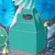 A gradient background blending blue into green. favor boxes
