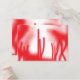 A graphic design featuring bold red and orange sha place card