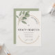 Greenery and gold frame customizable minimalistic black typography- wedding invitation. Light beige texture background.