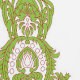 This design depicts an intricate and ornate floral pattern. The design features symmetrical arrangements of vine-like elements with delicate leaves and flowers. The predominant colors are shades of green, with hints of pink and white, creating a harmonious and elegant composition. The pattern is highly detailed, with intricate linework and decorative flourishes throughout. It appears to be a classical and traditional design, reminiscent of vintage wallpaper or textile patterns.