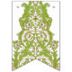 This design depicts an intricate and ornate floral pattern. The design features symmetrical arrangements of vine-like elements with delicate leaves and flowers. The predominant colors are shades of green, with hints of pink and white, creating a harmonious and elegant composition. The pattern is highly detailed, with intricate linework and decorative flourishes throughout. It appears to be a classical and traditional design, reminiscent of vintage wallpaper or textile patterns.
