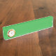 a green background with a white border desk name plate
