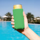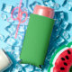 a green background with a white border seltzer can cooler