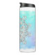 Bring your liquids along with sacred geometry and watercolor art gracing the travel mug. This white and turquoise mandala thermal tumbler not only looks pretty, it keeps your liquids at a constant temperature longer.