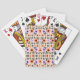 A hand holds a fan of playing cards, revealing clubs and face cards with a vibrant floral back design. Nearby, poker chips and a nut bowl suggest a game setting.