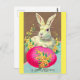 Vintage postcard with an adorable rabbit and a pink Easter egg.