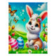 Easter in the spring garden sits a hare and is pleased with his Easter eggs he wants to give! A Digital Illustration to Easter