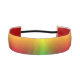 A headband with a vibrant rainbow gradient from red to yellow. It has a thin black elastic strap, creating a cheerful and colorful appearance.