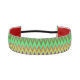 A headband with a vibrant zigzag pattern in green, red, yellow, and blue hues. It has red lining and a black elastic strap, suggesting boldness and energy.