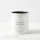 A simple black and white love shaped and personalized mug.