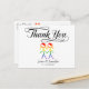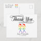 This thank you card features a beautiful and heartfelt design to show your appreciation for your wedding guests. The graphic depicts two women, in the form of elegant stick figures, holding hands. The figures are colored in a beautiful rainbow, symbolizing love and diversity. This card is a wonderful way to express gratitude to everyone who helped you celebrate your special day.