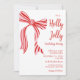 A holly jolly Pink Red Coquette Bow christmas Invitation