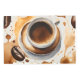 A very unusual design of art, the is a single cup of hot java in the center and some coffee beans with wild coffee stains all about, there is even a stain on the saucer. The art was designed with special software on a computer there is a small touch of watercolor look to the art.