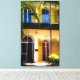 Florida sunshine lights up the entrance of this grand old house in Key West, warming the cream colored facade with its mustard colored shutters. The house was once the home of the author Ernest Hemingway, and is now a museum. In the original photograph by ZoeSPEAK on this Canvas Print, fronds of tall palm trees hang over the second floor balcony wth its arched windows reflecting the tropical blue sky. None of the famous cats are anywhere in view.