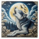 A Howling Wolf Under a Full Moon in a Serene Night Ceramic Tile