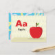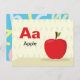 Letter A is for Apple in our Alphabet Flash Card set. Get all 26 letters of the alphabet! A double-sided postcard that is great for memory games and teaching, geared for education, schools, teachers and homeschool for kindergarten and babies. All text is editable if you need to customize.