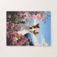 The image on this puzzle features a Jack Russell Terrier sitting amidst a flourish of soft pink blooms. The dog's keen eyes and perked ears convey a sense of alertness and curiosity, characteristic of its lively breed. The foreground is a riot of color with the delicate petals of the flowers, contrasting beautifully with the Terrier's smooth white and tan coat. In the background, a serene landscape stretches out, offering a glimpse of rolling hills and a clear blue sky dotted with fluffy white clouds. This image is a celebration of nature's splendor, with the charming Terrier serving as both a companion and a vibrant part of the floral tableau. generativecontent