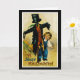 Vintage Halloween greeting card illustration showing a child with a scarecrow.