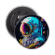 Unlock the universe with our "Cosmic Odyssey" bottle opener, a captivating blend of art and functionality. Crafted for those who revel in the extraordinary, this extraordinary piece features a highly detailed, colorful, and artistic illustration of an astronaut, set against a deep black space background adorned with shimmering stars. The astronaut's helmet, bearing the marks of a cosmic adventure, adds a touch of intrigue to this vibrant masterpiece.