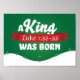 Beautiful calligraphy typography scripture art print with the words, "A King was born." A christian Christmas poster inspired by the Bible scripture Luke 1:32-33.