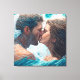 A beautiful artwork of a couple cuddling in the water together. A kiss in the waves.