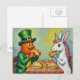 A leprechaun and a unicorn rabbit eating tacos postcard