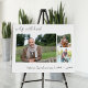 Modern Funeral or Memorial welcome board personalized with 3 photos of your loved one. The design features casual handwritten typography for your sentiment, your loved one's name and living years - all of which is editable.