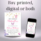 You can download your digital purchase an unlimited amount of times whether it's to print more of the same design, to make edits to the design, or to apply the digital design of your A Lifetime Of Butterflies Purple Bridal Shower Invitation to other products such as party supplies on Zazzle.