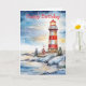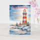 A red and white lighthouse in winter. Suitable for a birthday for anyone