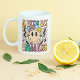 A Little Bit Dramatic Funny Groovy Saying Typography Tea Coffee Mug features the text "A Little Bit Dramatic" in modern typography on a pink checkerboard background with groovy flowers, lightening bolts and a smiling face. Designed by Evco Studio www.zazzle.com/store/evcostudio