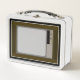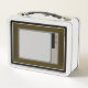 This is a standard metal lunchbox that appears to work just fine. We designed this box ourselves with an uploaded photo and custom text on the front and back. It looks absolutely beautiful except the front of the lunchbox is not centered like it shows in the photo. The print borders don't align with the inset flat part of the box where the preview photo online showed it perfectly centered in there. The back looks nice and centered though.