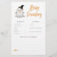 This design features a cute little watercolor ghost wearing a wizard's hat and bow tie. A cute October baby shower theme. A baby predictions & advice game card to match our "A Little Boo Cute Halloween Baby Shower" design. View the collection linked on this page for matching items or visit our store for more halloween baby shower designs.