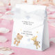 A little boy is on the way boys baby shower favor box featuring cute teddy bears, stars, half moons, pastel love heart cushions, and blush background.