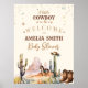 Welcome guests to your baby shower with this charming cowboy-themed poster. Featuring rustic Western elements like cacti, boots, and a horse against a desert backdrop, it's the perfect personalized decoration. Durable and stylish, it adds a warm, country touch to your celebration!