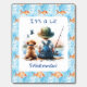 Baby Shower favors. An adorable sweet little ai watercolor illustration of a baby boy fishing with a puppy dog. The colors of this invitations include blue and orange. Cute fish swimming around in the background.
