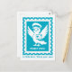 Our little postbird and mascot is featured on this teal postage stamp design with her name "Penny Post", wearing a postman's hat and holding a postcard with a heart. A little love, flying your way is written as a cute message at the bottom of the postcard! Great for kids - just adorable!