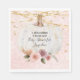 "A Little Pumpkin Blush Gold Glitter Watercolor Flower, Rose and Peony Floral Baby Girl Shower Paper Napkins." Elegant and magical sparkling soft blush pink bokeh sparkle background with golden string lights and stars over a white pumpkin and modern painterly watercolor flowers. Art painted by internationally licensed artist and designer, Audrey Jeanne Roberts, copyright.