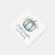 watercolor illustration of a light blue-gray pumpkin with a brown stem and delicate baby's breath flowers arranged around its top. The pumpkin has a soft, matte texture with subtle shadows and highlights. The baby's breath stems are painted in a light beige color with small white flowers clustered along them. Green leaves are scattered throughout the arrangement. Below the pumpkin, there is cursive text in a muted gray color that reads "A little pumpkin is on his way". The text is centered and has a flowing, elegant style. The entire illustration is set against a pure white background. The pumpkin takes up approximately two-thirds of the image height, while the text occupies the bottom third. The overall composition has a soft, feminine aesthetic with a muted color palette dominated by blues, beiges, and greens.