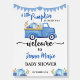 Celebrate the upcoming arrival of your little one with this charming "A Little Pumpkin is On His Way" baby shower welcome board! This delightful design features a vintage blue truck loaded with vibrant pumpkins, perfectly capturing the essence of fall and the joy of welcoming a baby boy. The rustic charm and whimsical illustration makes this board ideal for a cozy autumn baby shower.