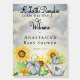 "A Little Pumpkin" Is On His Way and it is so exciting! This Baby Shower design features sunny sunflowers with blue pumpkins and fall greenery with a cute little watering can against a fluffy clouded muted blue sky. Composite design by Holiday Hearts Designs.