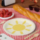 A Little Ray of Sunshine Party supplies, paper plates, napkins, and party favors.