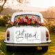 Add a touch of contemporary elegance to your grand exit with our modern cursive "Just Married" banner, designed for your getaway car. This stylish banner features sleek cursive lettering that perfectly captures the joy and excitement of your special day. Celebrate your newlywed status in chic fashion as you drive away with this beautifully crafted banner, making your departure as unforgettable as the rest of your wedding.
