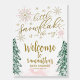 Adorable calligraphy with snowflakes, winter-themed baby shower welcome sign. Easy to personalize with your details. Check the collection to find matching items as enclosure cards.