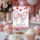 Add a touch of elegance to your gift table with our A Little Sweetheart Cards and Favors Sign. Featuring a stylish coquette bow with a red heart pattern and the words "Favors" along with " Please take one! Thank You for Celebrating with Us," this tabletop sign is a charming way to guide your guests.