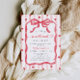Celebrate the mommy--to-be with a Valetine's Day inspired baby shower invitation! This Little Sweetheart Invitation includes a watercolor bow, pink stripes, and red hearts.