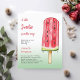 A green and white gradient background. Decorated with a large watermelon pop stick. Personalize and add the name of the mother to be and party details. Text: A little Sweetie is on the way.