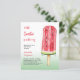 A white and green gradient background. Decorated with a large watermelon pop stick. Personalize and add the name of the mother to be and party details. Text: A little Sweetie is on the way.