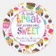 A cute and colorful 'A little treat for someone sweet' sticker. The pattern consists of cute cupcakes and candy - perfect for adding to sweet favors at your valentines, wedding or engagement party. Or just because :) This would be a great sticker for teacher appreciation or with a thank you gift for employees and volunteers.